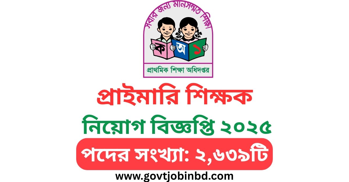 প্রাথমিক শিক্ষক নিয়োগ দেওয়া হবে। এর পাশাপাশি ইতিমধ্যে ২,৬৩৯ টি পদে প্রাথমিক শিক্ষা অধিদপ্তরের নিয়োগ বিজ্ঞপ্তি প্রকাশিত হয়েছে।